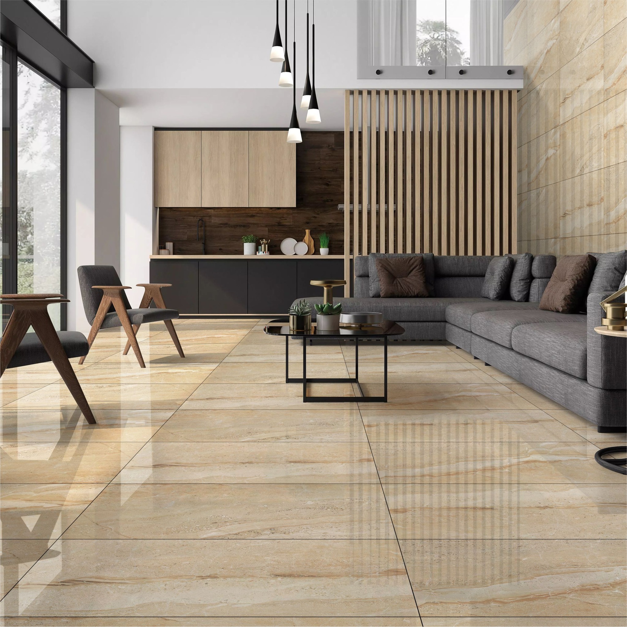 Gạch bóng kiếng 60×120 là sản phẩm được thiết kế với bề mặt bóng kiếng thường được dùng để ốp tường hoặc lát sàn. Gạch bóng kiếng đang trở thành xu hướng của nhiều ngôi nhà hiện đại. Với những ưu điểm nổi trội, gạch bóng kiếng có thể thay thế cho nhiều sản phẩm gạch men thông thường hiện nay.