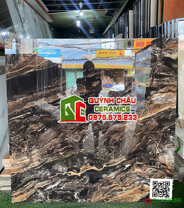 Gạch 120×120 màu đen vân đá nâu siêu bóng Black Merida Pedra ấn độ