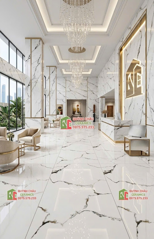 - Ốp lát phòng khách: Tạo ra một khu vực sinh hoạt chung bề thế, rộng rãi và tràn ngập ánh sáng, thể hiện rõ gu thẩm mỹ đỉnh cao của gia chủ.