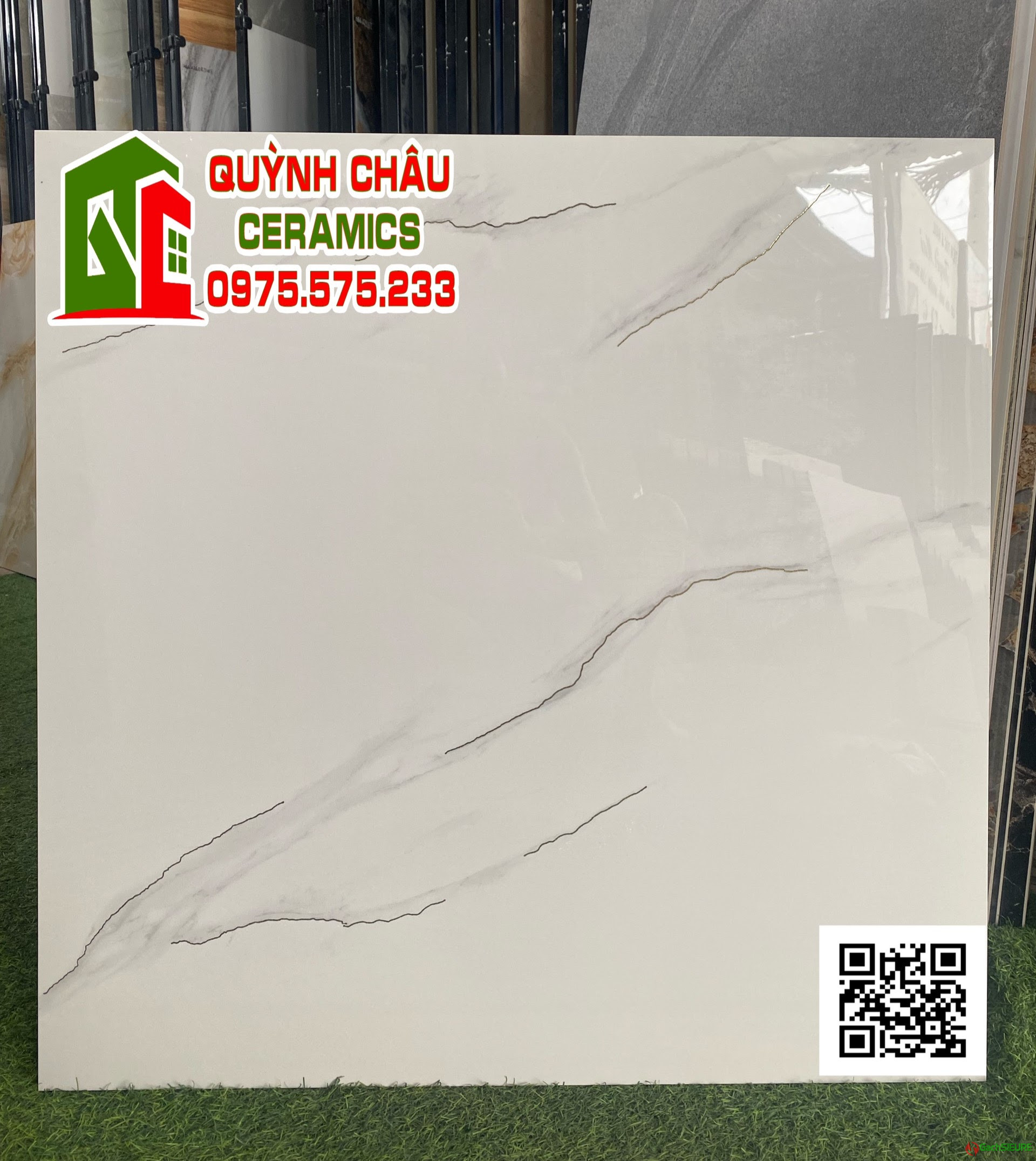 Gạch 80×80 khắc kim xương đá men bóng trắng vân