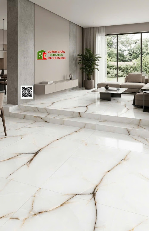 - Kích thước khổ lớn 60x120cm: Giảm thiểu tối đa các đường ron (mạch) gạch, tạo sự liền mạch và mở rộng diện tích không gian đáng kể.
