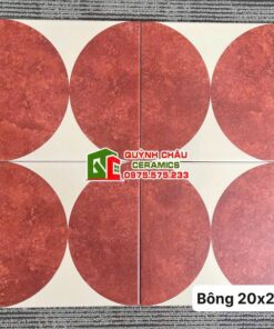 Gạch bông 20×20 giả cổ trắng kem nâu đỏ hình tròn