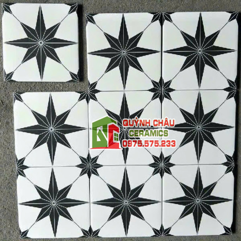 Gạch bông 20×20 hoạ tiết ngôi sao trắng đen