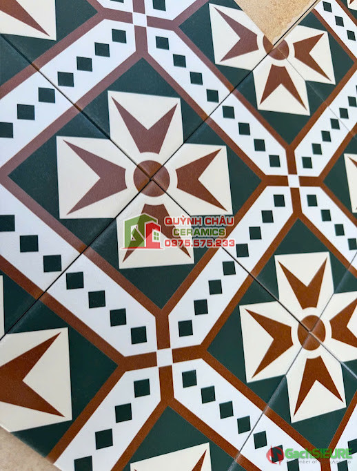 Gạch bông 20×20 màu xanh nâu họa tiết | Gạch bông hay còn gọi là gạch hoa dùng để ốp lát trang trí với sắc màu đa dạng,nhiều mẫu mã gạch bông hoa văn mộc mạc từ cổ điển tới hiện đại,sản phẩm mang đầy tính ứng dụng dùng trong trang trí điểm nhấn nghệ thuật và thẩm mỹ cao.Những mẫu gạch bông được sản xuất theo công nghệ dây chuyền hiện đại,cốt liệu xương gạch đá Porcelain hoặc cốt liệu xương men ( ceramic ) Gạch bông 20×20 được sản xuất sử dụng công nghệ in màu 5D họa tiết,hoa văn tinh tế,sắc sảo,đặc biệt nhiều mẫu gạch bông vẫn giữ nguyên màu sắc của gạch bông cổ điển mang đến sự cuốn hút và gây ấn tượng nhiều hơn.