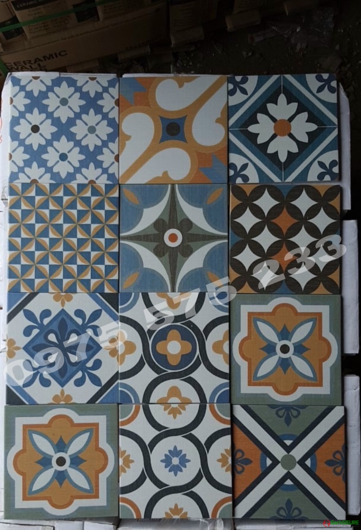 Gạch bông 20×20 mix hoa văn lộn xộn | Gạch bông trang trí với nhiều mẫu mã,màu sắc,hoa văn từ cổ điển tới hiện đại.Những mẫu gạch bông được sản xuất theo công nghệ dây chuyền hiện đại, chất liệu xương gạch đá được làm từ Porcelain hoặc chất liệu xương men ( ceramic ) bề mặt mờ mịn. Gạch bông hoạ tiết,hoa văn được sử dụng công nghệ in màu 5D giúp cho gạch bền đẹp, sắc sảo ,đặc biệt nhiều mẫu gạch bông vẫn giữ nguyên màu sắc của gạch bông cổ điển.