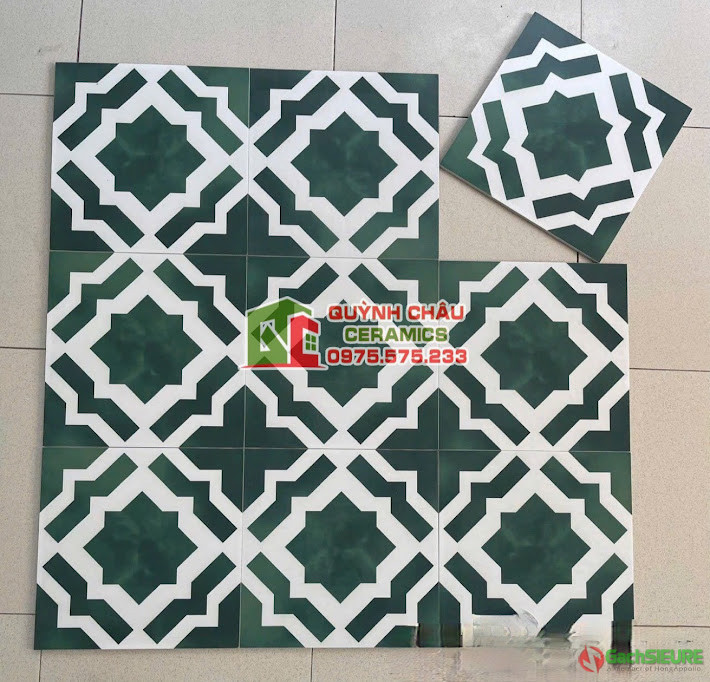 Gạch bông 30×30 điểm xanh lá hoa văn | Gạch bông hay còn gọi là gạch hoa dùng để ốp lát trang trí với sắc màu đa dạng,nhiều mẫu mã gạch bông hoa văn từ cổ điển tới hiện đại,sản phẩm mang đầy tính ứng dụng dùng trong trang trí nghệ thuật và thẩm mỹ cao.Những mẫu gạch bông được sản xuất theo công nghệ dây chuyền hiện đại,cốt liệu xương gạch đá Porcelain hoặc cốt liệu xương men ( ceramic ) Gạch bông 30×30 được sản xuất sử dụng công nghệ in màu 5D họa tiết,hoa văn tinh tế,sắc sảo,đặc biệt nhiều mẫu gạch bông vẫn giữ nguyên màu sắc của gạch bông cổ điển mang đến sự cuốn hút và gây ấn tượng nhiều hơn.