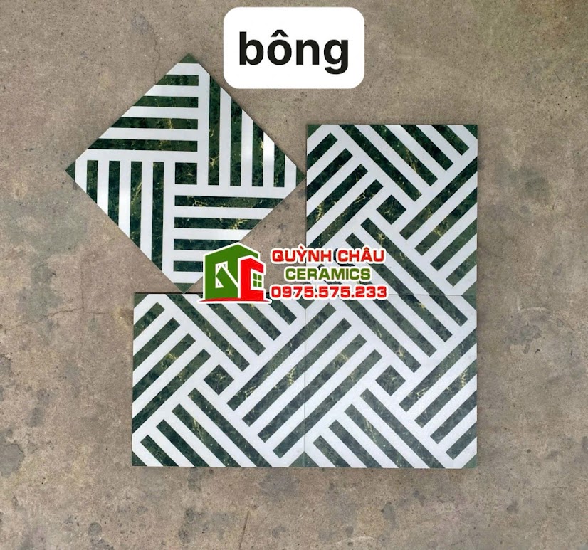 Gạch bông 30×30 hoa văn sọc xanh trắng