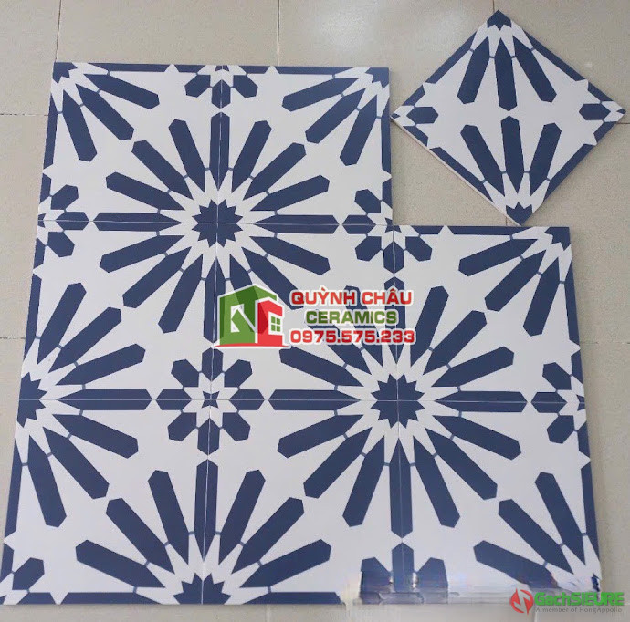 Gạch bông 30×30 màu xanh dương hoa văn cổ xưa | Gạch bông hay còn gọi là gạch hoa dùng để ốp lát trang trí với sắc màu đa dạng,nhiều mẫu mã gạch bông hoa văn từ cổ điển tới hiện đại,sản phẩm mang đầy tính ứng dụng dùng trong trang trí nghệ thuật và thẩm mỹ cao.Những mẫu gạch bông được sản xuất theo công nghệ dây chuyền hiện đại,cốt liệu xương gạch đá Porcelain hoặc cốt liệu xương men ( ceramic ) Gạch bông 30×30 được sản xuất sử dụng công nghệ in màu 5D họa tiết,hoa văn tinh tế,sắc sảo,đặc biệt nhiều mẫu gạch bông vẫn giữ nguyên màu sắc của gạch bông cổ điển mang đến sự cuốn hút và gây ấn tượng nhiều hơn.