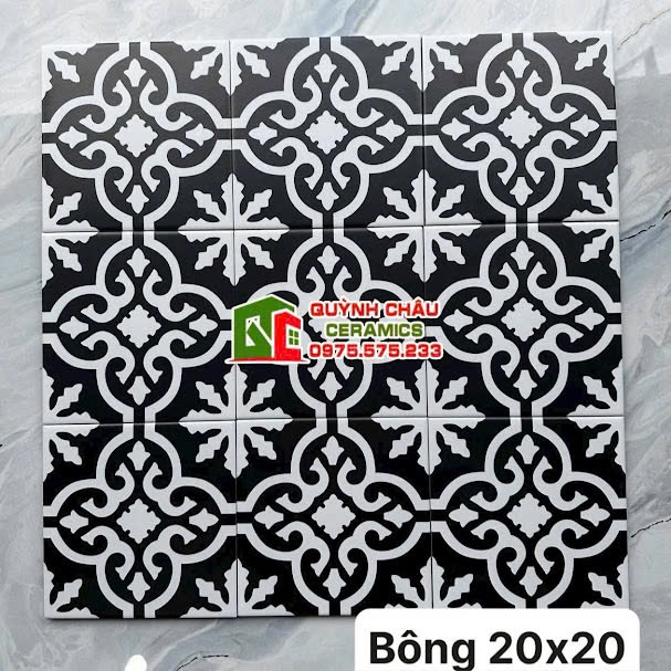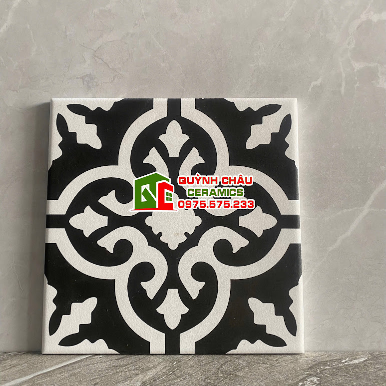Gạch bông cổ điển 20×20 phong cách vintage đen trắng