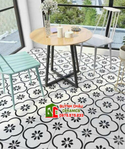 Gạch bông giả cổ 20×20 hoa mai trắng đen