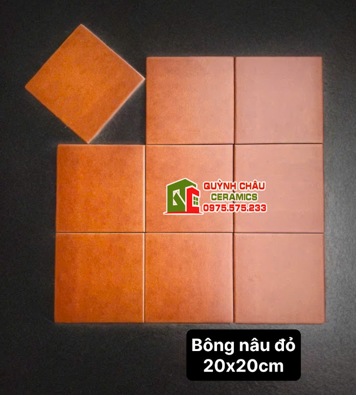 Gạch bông giả cổ nâu đỏ 20×20 đá mờ