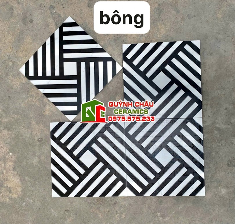 Gạch bông lát nền 30×30 hoa văn sọc đen trắng
