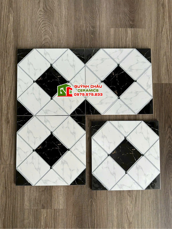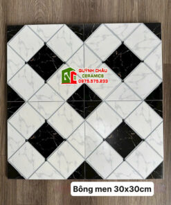 Gạch bông men 30×30 cổ điển vân đá marble đen trắng