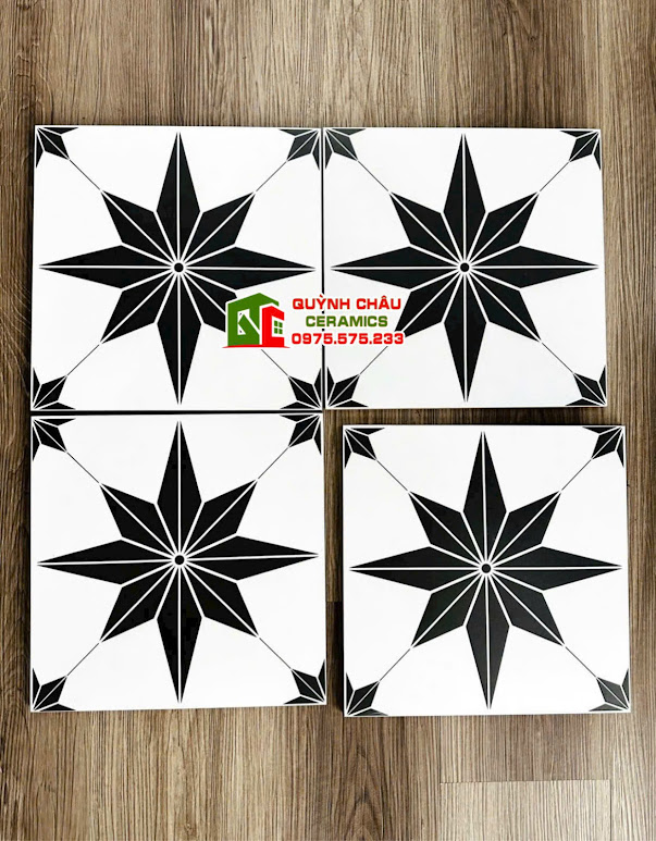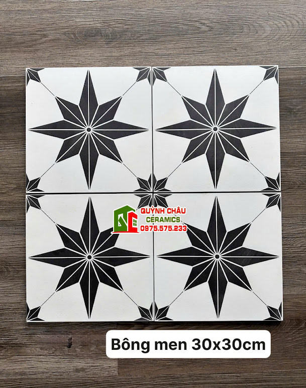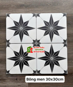 Gạch bông men 30×30 hoa văn cánh sao đen trắng