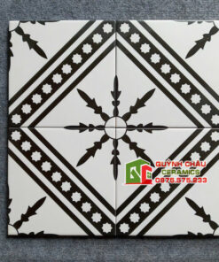 Gạch bông trung quốc 20×20 hoa văn trắng đen giả cổ