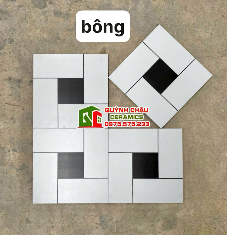 Gạch bông trung quốc 30×30 hoa văn ghép trắng đen