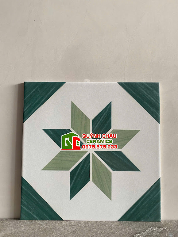 Điểm nhấn làm nên vẻ đẹp độc đáo của mẫu gạch này nằm ở bề mặt đối xứng hoàn hảo và hoa văn ngôi sao màu xanh lá cây nổi bật trên nền xanh cổ điển. Sự kết hợp màu sắc này không chỉ tạo ra một cái nhìn nghệ thuật mà còn gợi lên cảm hứng từ phong cách vintage và Indochine lãng mạn. Dù bạn theo đuổi sự tối giản hay sự phá cách hiện đại, mẫu gạch này đều có thể dung hòa và nâng tầm không gian.