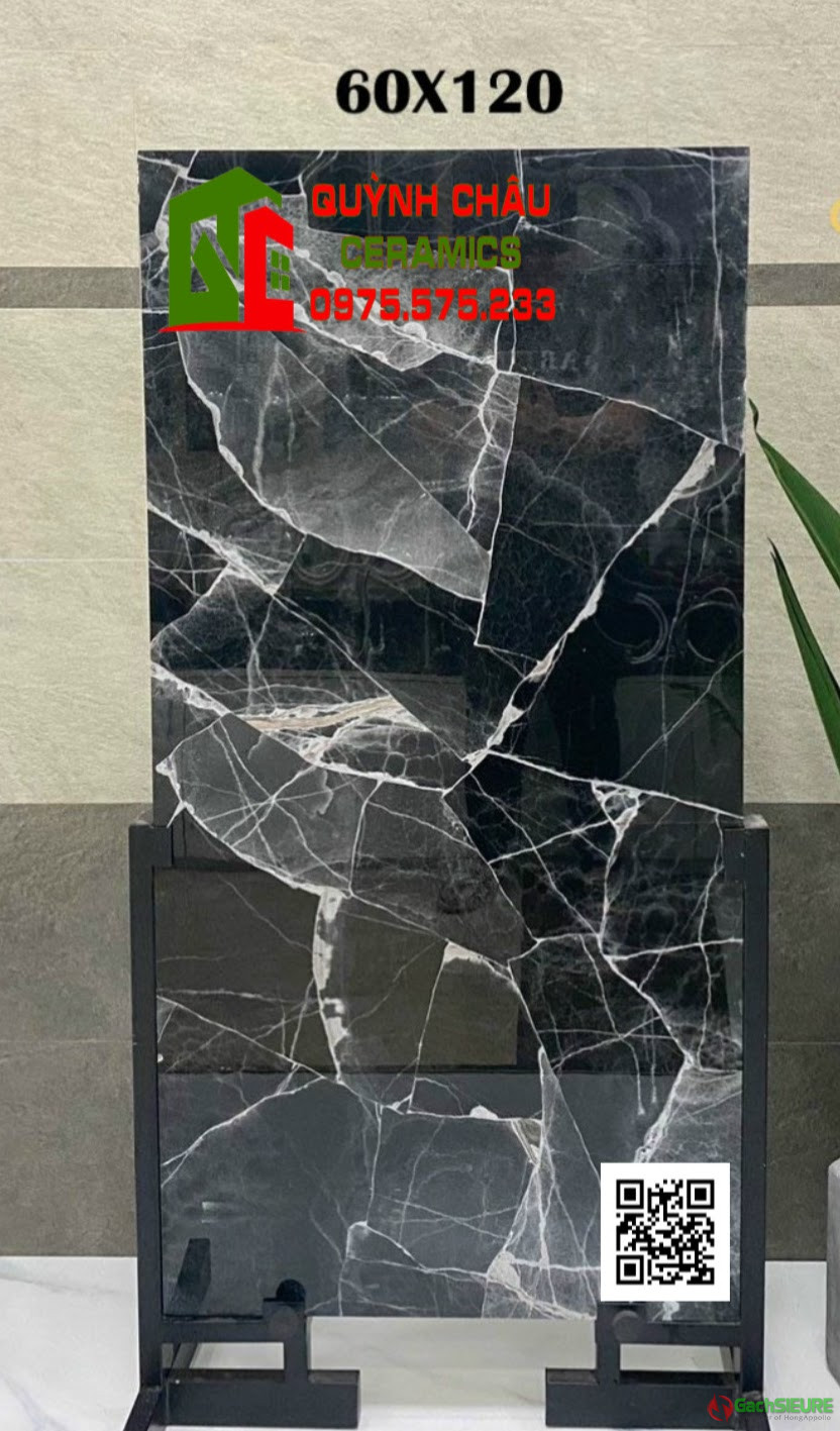 Gạch cao cấp 60×120 đen vân trắng siêu bóng ốp mặt tiền