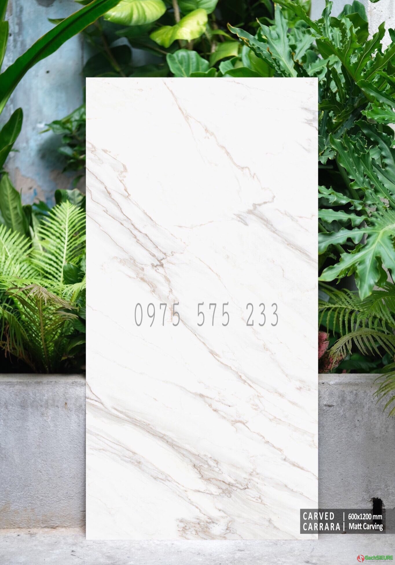 Gạch đá mờ 600x1200mm trắng vân khổ to