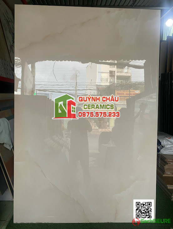 Gạch khổ lớn nhập khẩu ấn độ 120×180 màu kem vân mây Light Cream Onyx siêu bóng ốp lát biệt thự penhouse đại sảnh