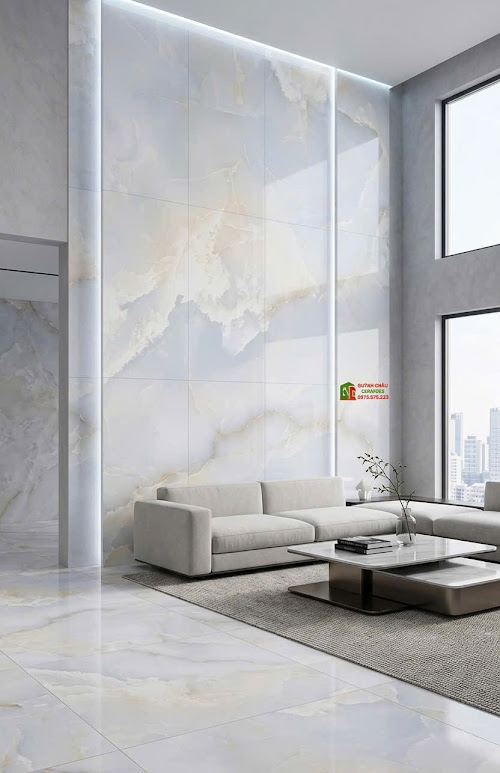 Nhờ vẻ đẹp hiện đại và sang trọng, dòng gạch vân đá Onyx trắng ngọc này là ưu tiên hàng đầu cho các hạng mục: