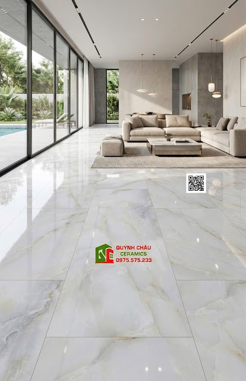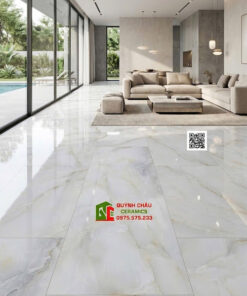 Gạch lát nền ấn độ 60×120 kem vân đá xanh ngọc bóng kính