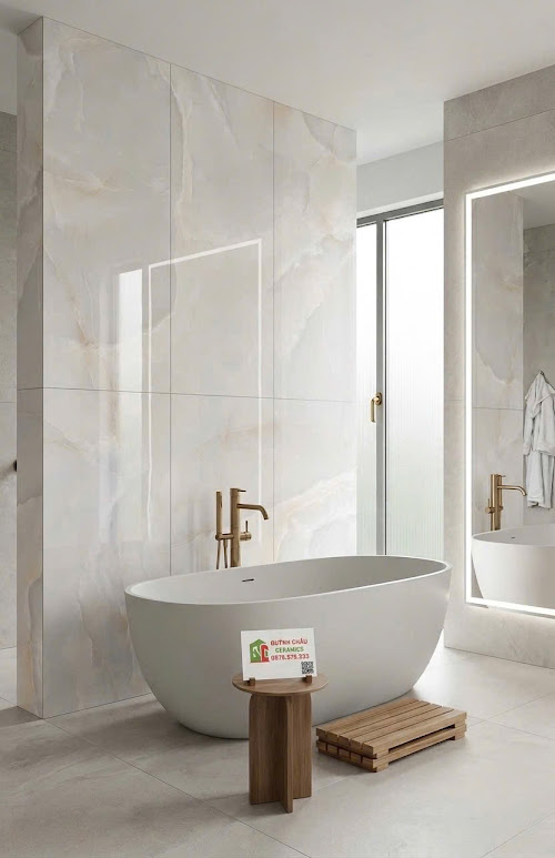 Với kích thước 60×120 cm, dòng gạch khổ lớn (Big Slab) này giúp hạn chế tối đa các đường ron (mạch gạch), tạo nên một bề mặt liền mạch, mở rộng thị giác và làm cho không gian trở nên thoáng đạt hơn.