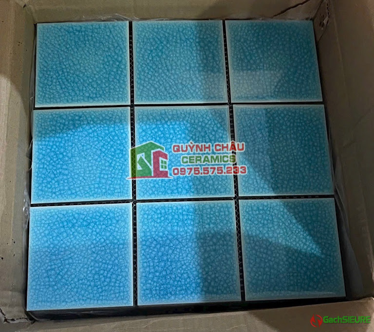 Gạch mosaic 10×10 màu xanh ngọc gốm men rạn bề mặt bóng