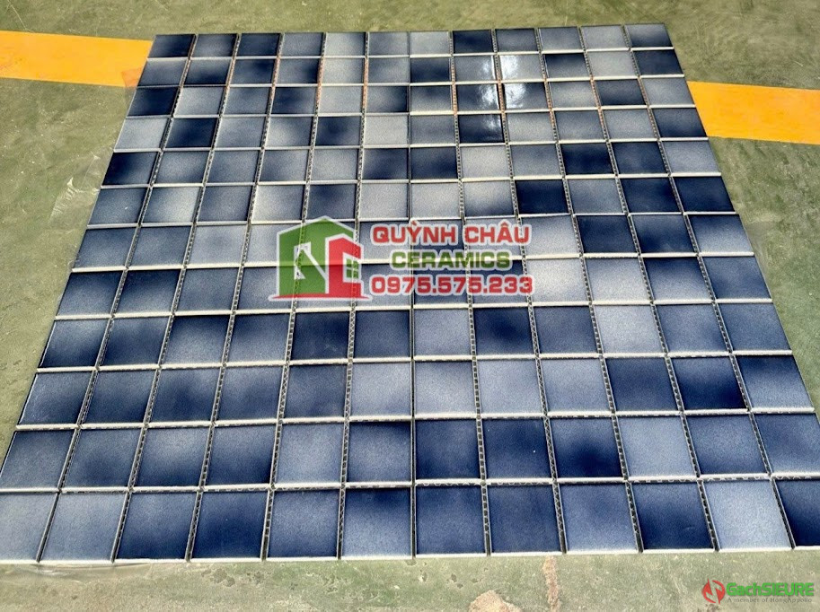 Gạch mosaic gốm màu xanh dương men trơn | Gạch vỉ mosaic gốm men trơn bề mặt gam màu xanh dương,được cấu tạo giữa các viên chip có kích thước 48mm x 48mm ô hình vuông,liên kết lớp keo kết dính lớp vỉ lưới gắn với nhau tạo thành một mảng vỉ kích thước 306mm x 306mm được sử dụng ốp dán trang trí cho mọi không gian nội thất / ngoại thất.Sản phẩm gạch mosaic gốm men trơn sang trọng và hiện đại mang đầy kiểu cách nghệ thuật ốp trang trí theo cá tính riêng biệt.