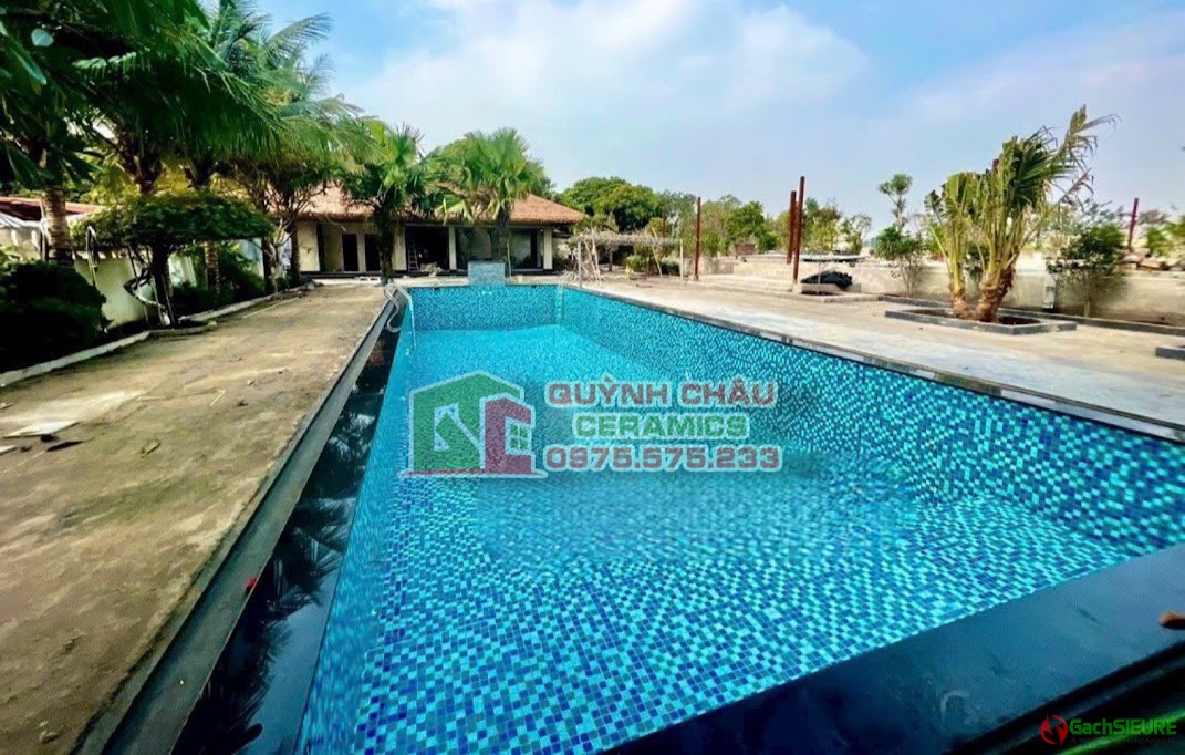 Gạch mosaic gốm phối mix màu xanh biển hồ bơi