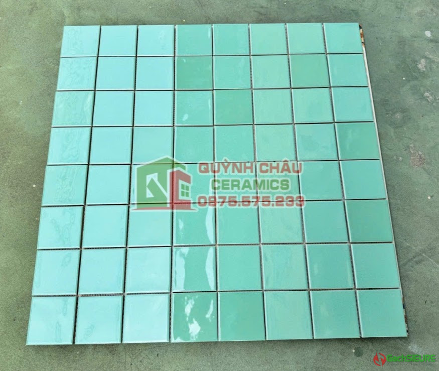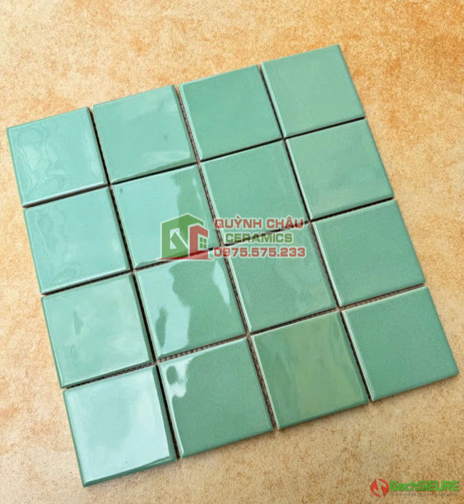 Gạch mosaic gốm sứ màu xanh lá men phủ bóng