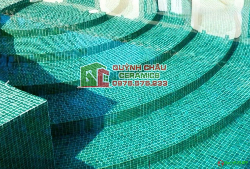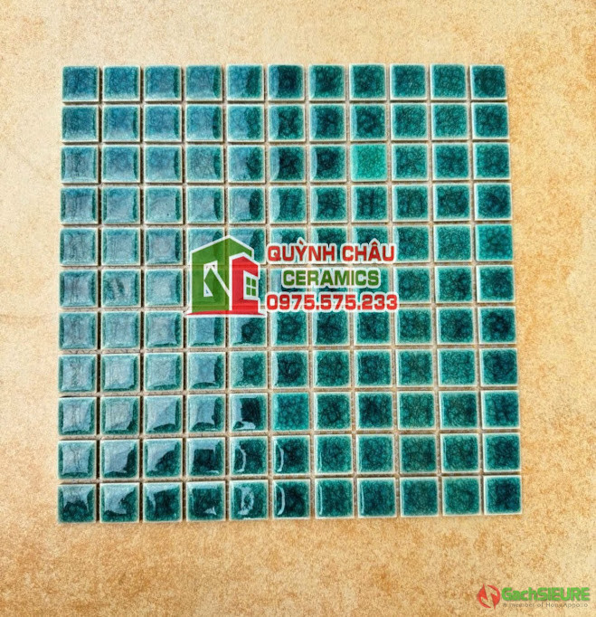 Gạch mosaic gốm sứ men rạn xanh lục bảo đậm bóng