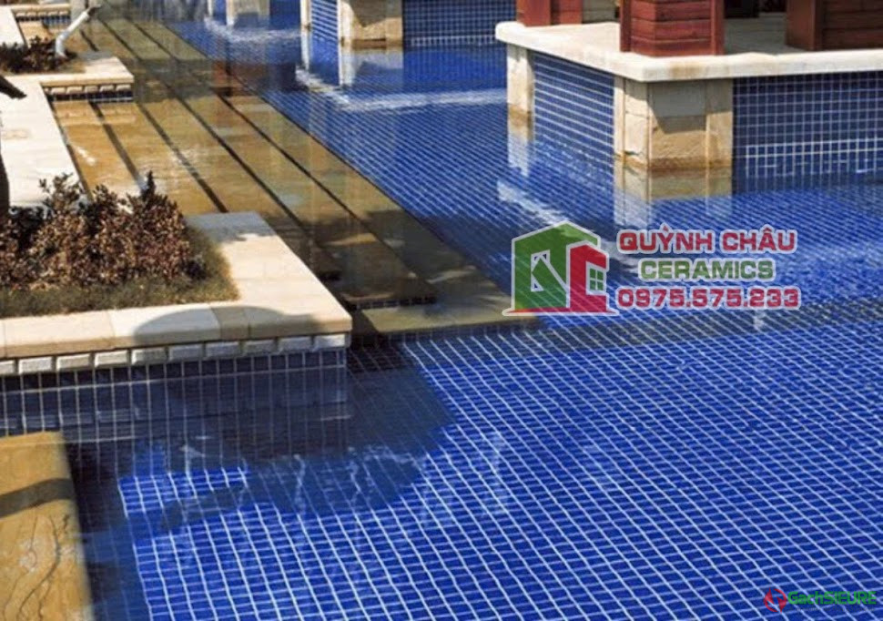 Gạch mosaic hồ bơi màu xanh biển gốm men rạn 2 lớp