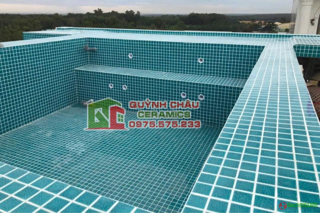 Gạch mosaic hồ bơi màu xanh ngọc gốm men rạn 2 lớp