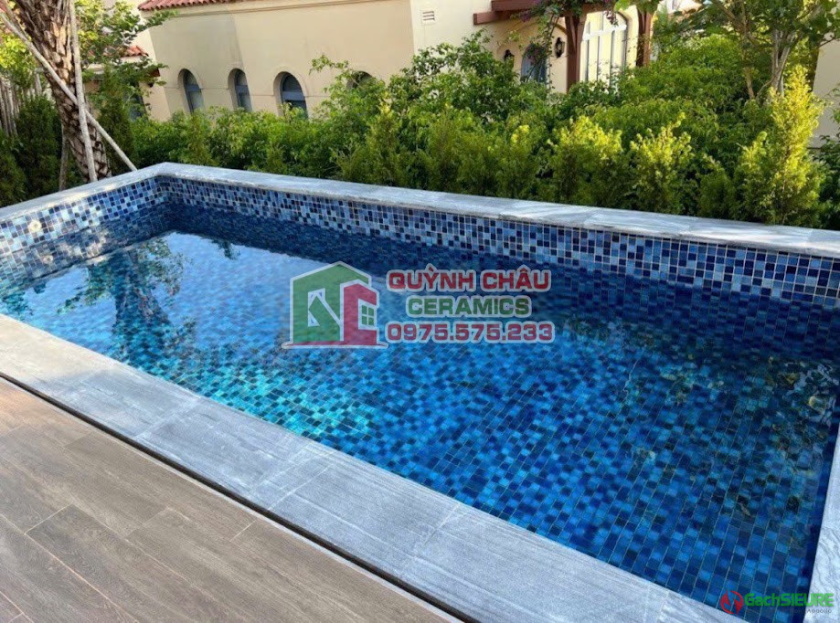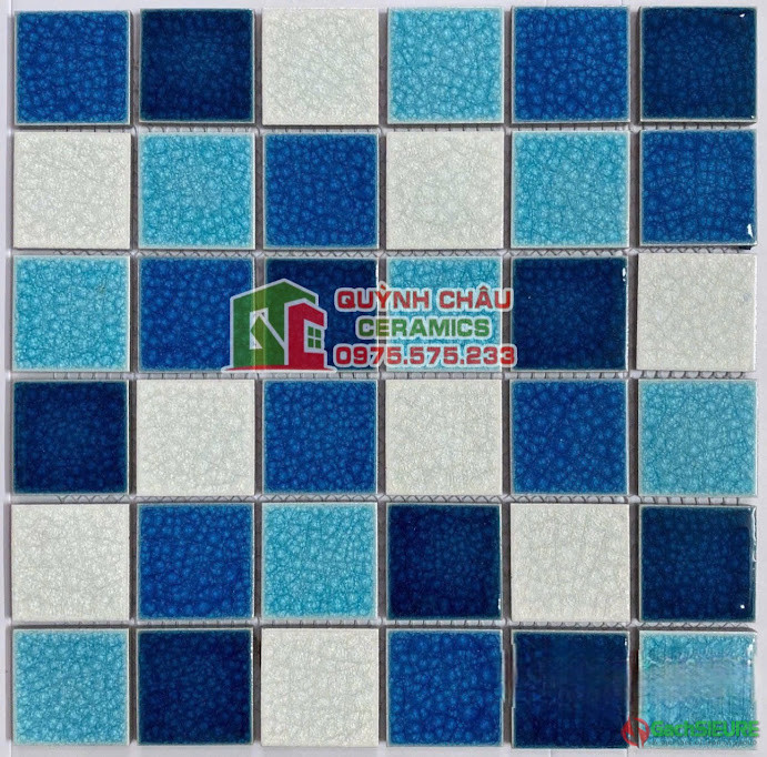 Gạch mosaic hồ bơi phối màu gốm men rạn 2 lớp