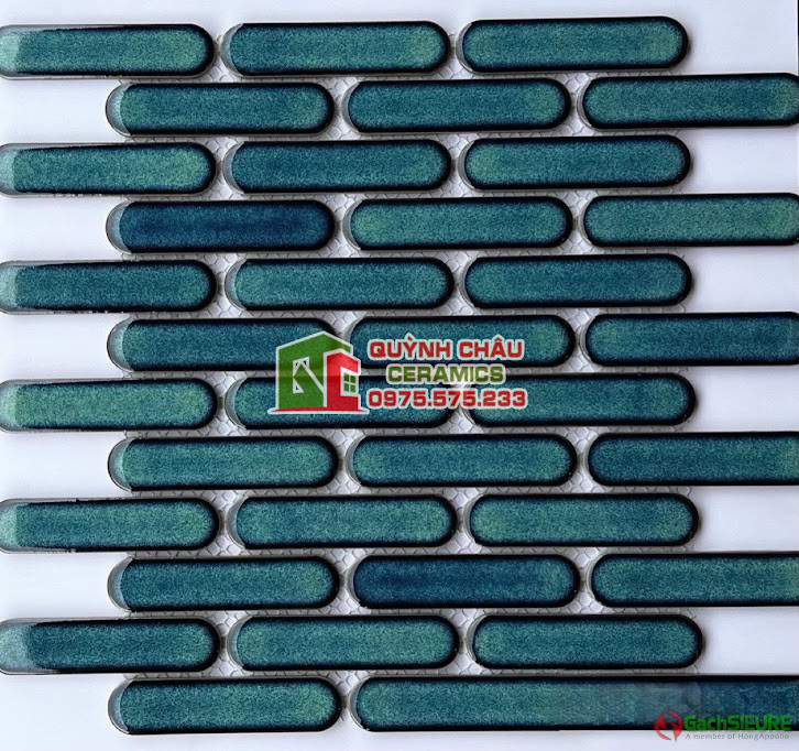 Gạch mosaic que đầu tròn màu xanh rêu bề mặt bóng | Gạch vỉ mosaic que đầu tròn màu xanh rêu bề mặt bóng,với sự sáng tạo các sản phẩm dòng que đũa trang trí,gạch mosaic que đầu tròn được gép từ các viên chip kích thước nhỏ hình chữ nhật dài và mỏng liên kết với nhau ở dạng vỉ lưới,tạo nên sự thanh thoát,nhẹ nhàng khi sử dụng ốp dán trang trí cho không gian.Sản phẩm gạch que đũa đầu tròn vô cùng lạ mắt,sang trọng và hiện đại mang đầy kiểu cách nghệ thuật ốp trang trí theo cá tính riêng biệt.