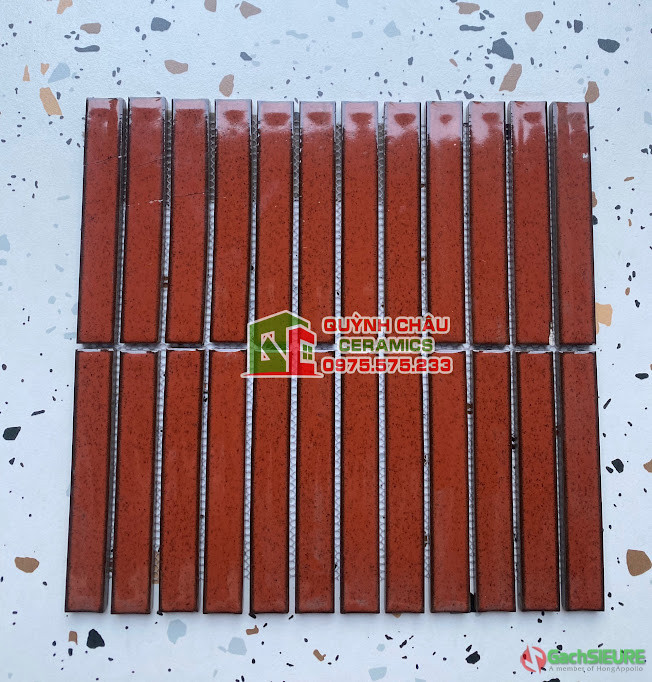 Gạch mosaic que đũa màu đỏ đô chấm mè bề mặt lõm | Gạch trang trí mosaic que đũa là mẫu dài thuôn và mỏng sản phẩm mang đầy tính ứng dụng dùng trong trang trí nghệ thuật và thẩm mỹ cao.Với ưu điểm ưa nhìn,bắt mắt mẫu gạch mosaic que đũa sử dụng trong trang trí tại phòng khách,nhà hàng,quán coffee nhà ở,phòng bếp,phòng tắm,phòng ngủ,quầy bar,quán cafe,spa trang trí nội thất /ngoại thất khách sạn cao cấp, resort nghĩ dưỡng và nhiều công trình khác cần mang đến sự cuốn hút và gây ấn tượng nhiều hơn.