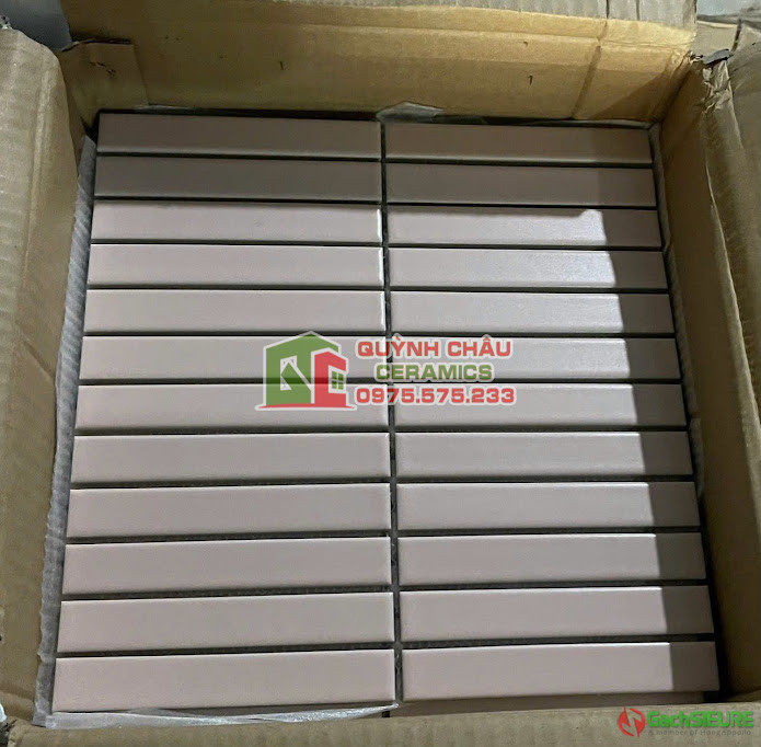 Gạch mosaic que đũa màu hồng men mờ trơn