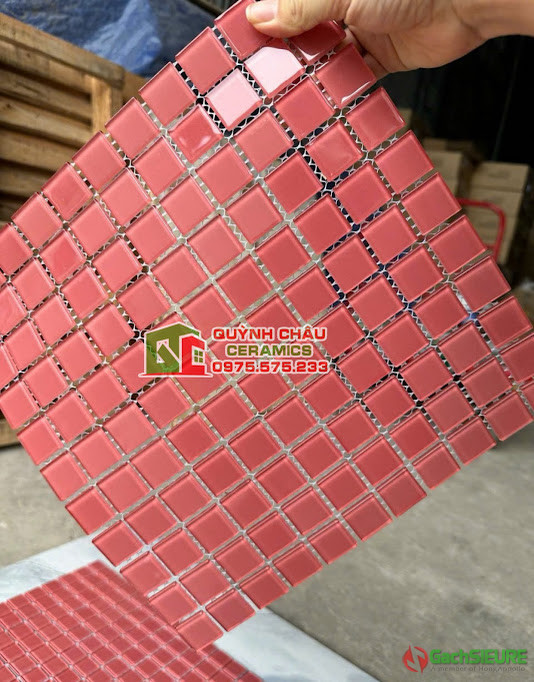 Gạch mosaic thủy tinh màu hồng ốp trang trí đẹp