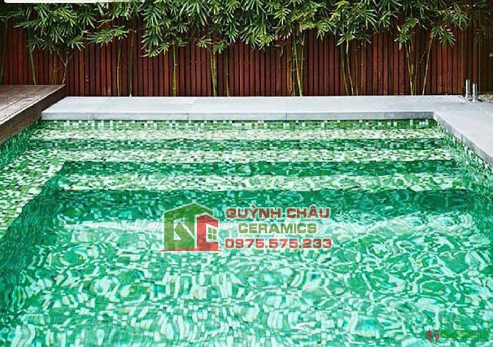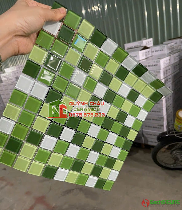 Gạch mosaic thủy tinh mix màu xanh lá trơn