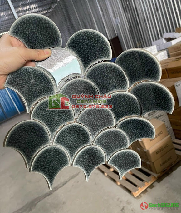 Gạch mosaic vảy cá màu xanh rêu men rạn
