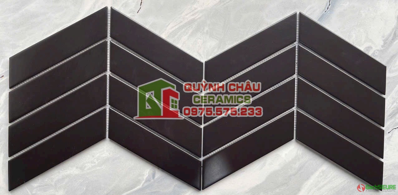 Gạch mosaic vỉ đen mờ hình xương cá | Gạch vỉ mosaic xương cá là dòng gạch mosaic có hình dáng giống với hình xương cá.Được gép nhiều thanh nhỏ ở dạng vỉ lưới ghép so le với nhau giống hình xương cá.Gạch mosaic xương cá sở hữu thiết kế ấn tượng.Nhờ đó ứng dụng ốp lát trong không gian,gạch vỉ xương cá mang đến vẻ đẹp cá tính,phong cách chính là ưu điểm nổi bật và thu hút.