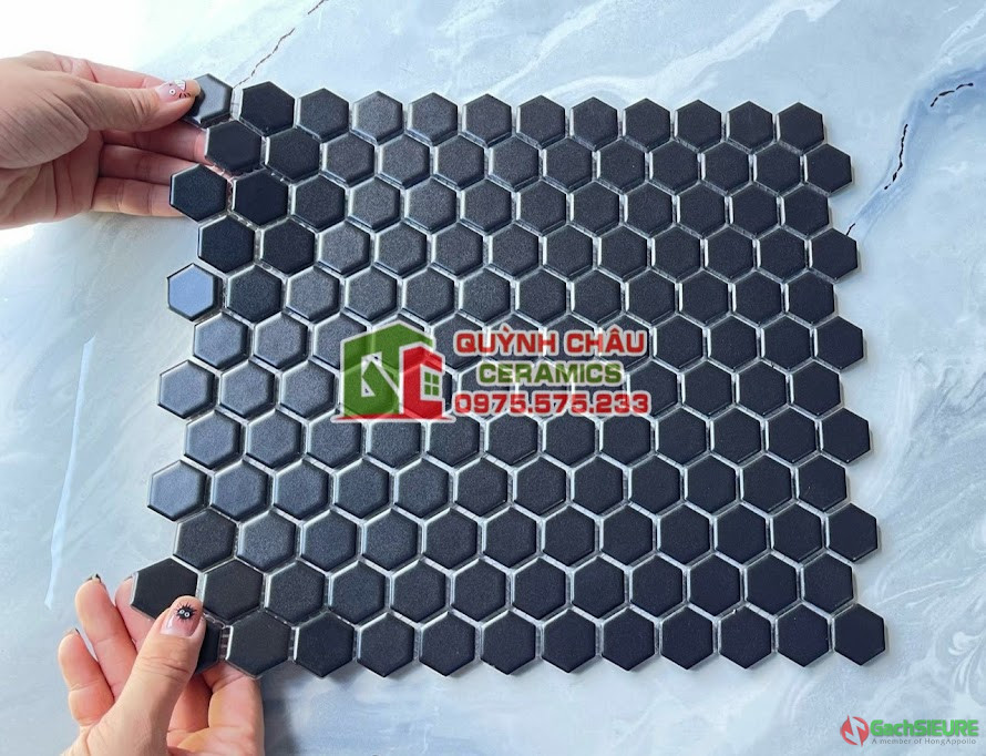Gạch mosaic vỉ lục giác đen mờ viên chip nhỏ