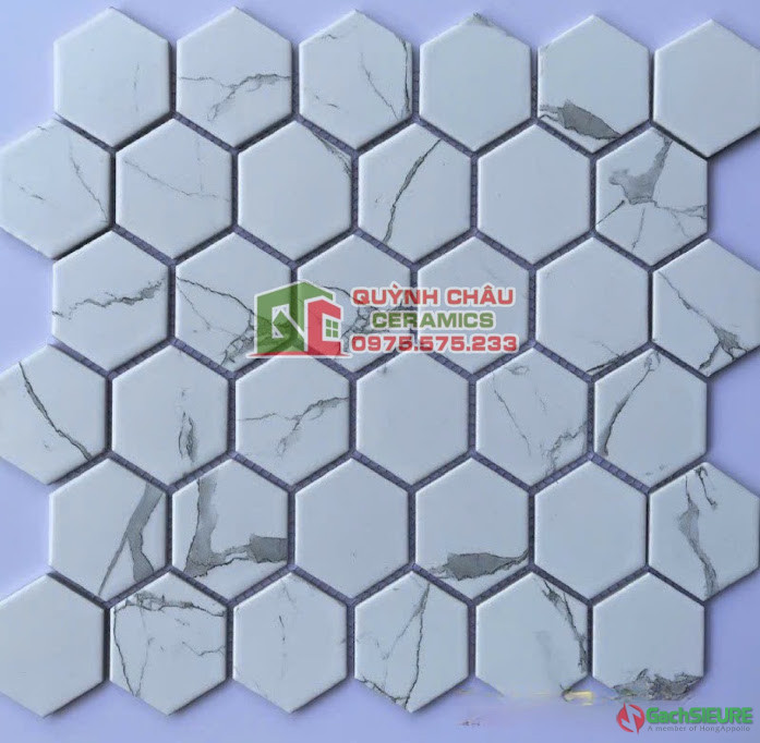 Gạch mosaic vỉ lục giác màu trắng đá vân mây