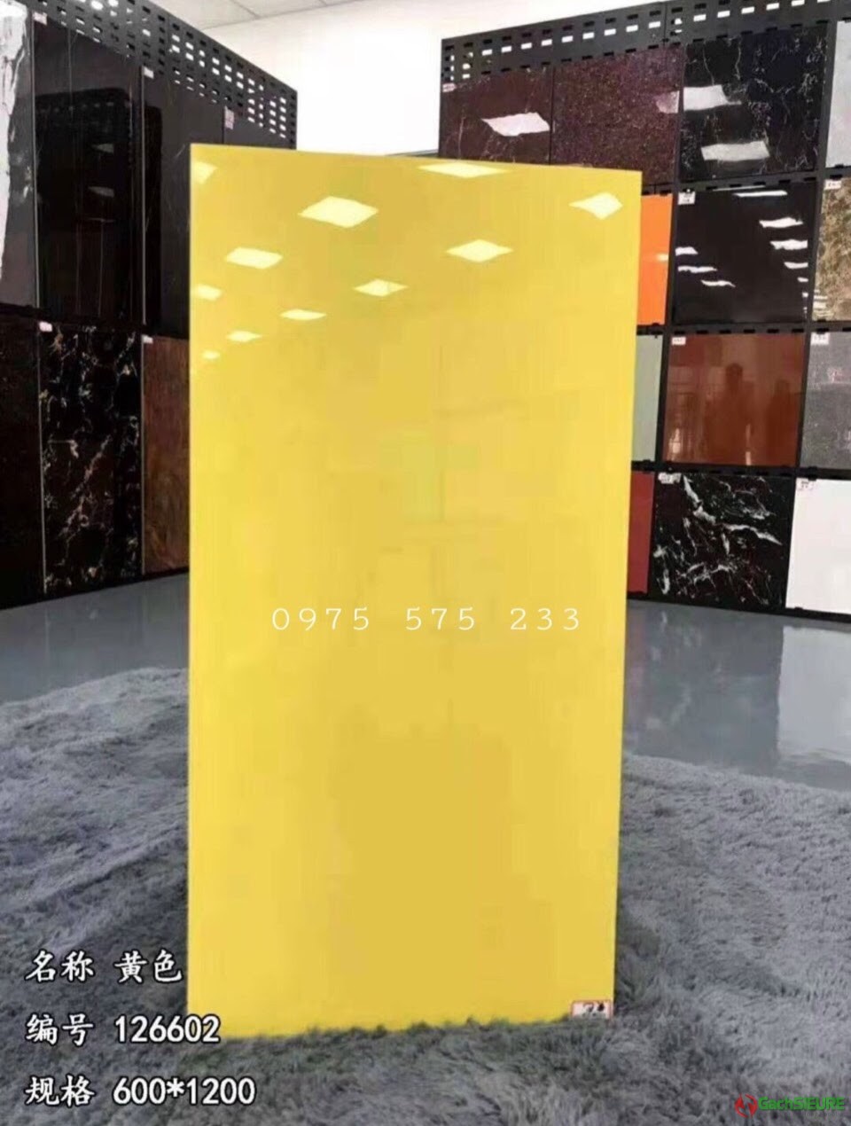 Gạch nhập khẩu 60×120 màu vàng trơn siêu bóng kiếng nổi bật