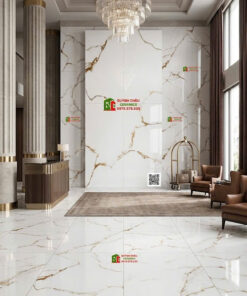 Gạch ốp lát 60×120 bóng kính trắng vân vàng sang trọng