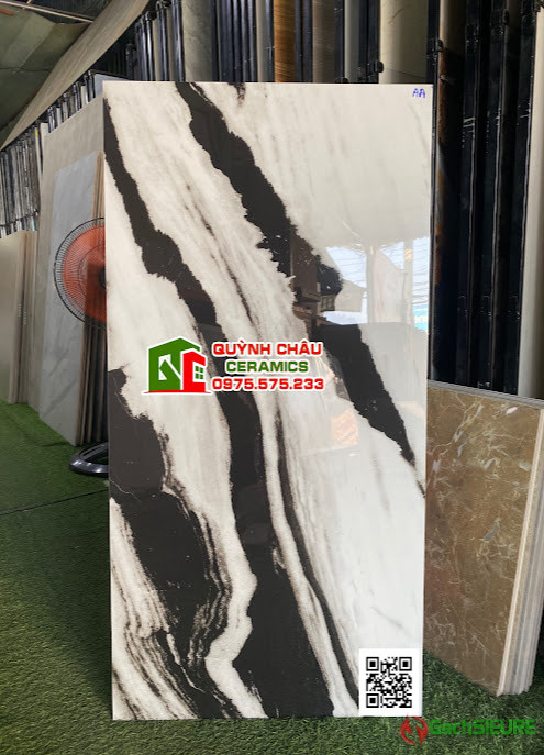 Gạch ốp lát 60×120 gam màu đá vân trắng đen bóng kiếng