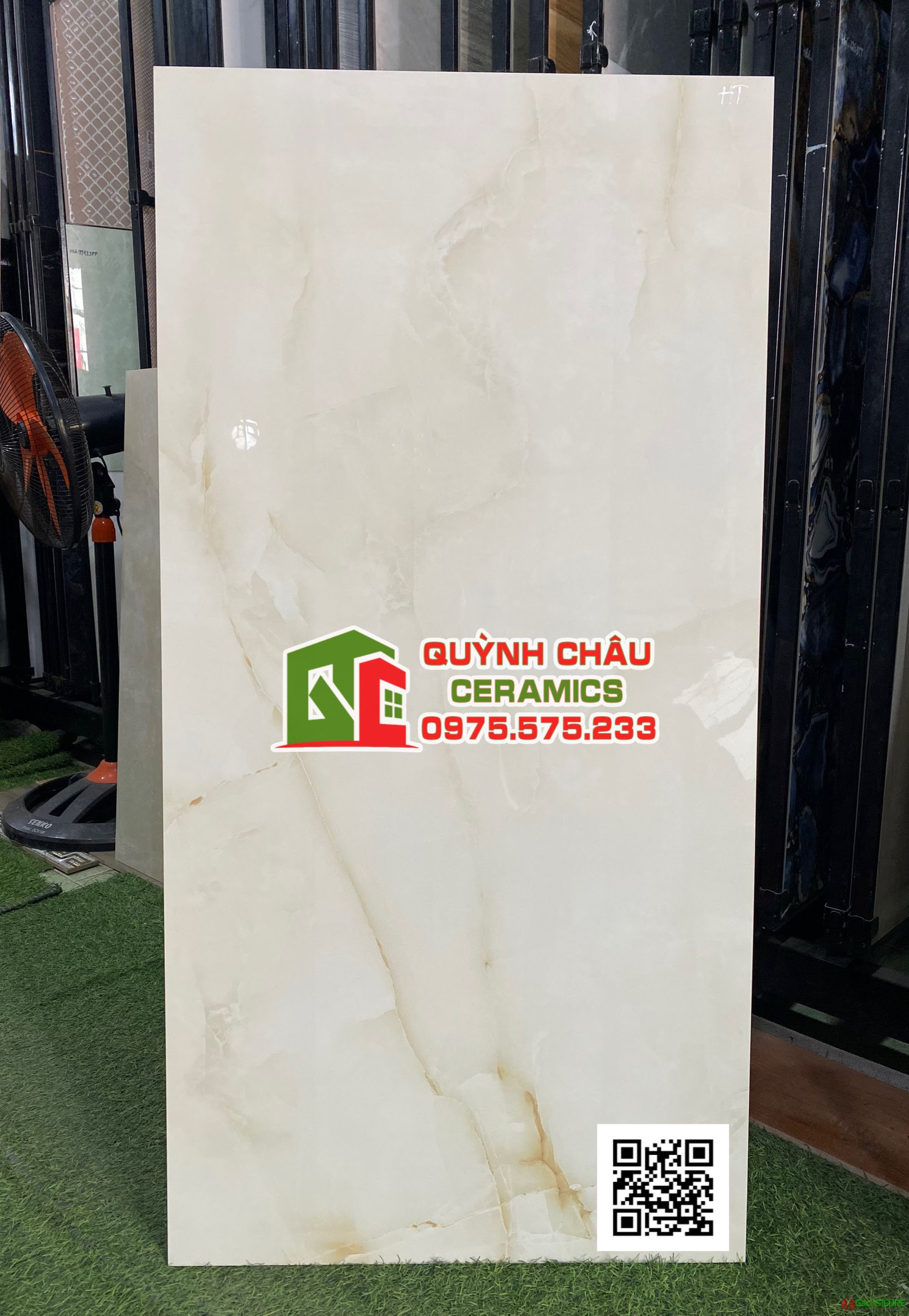 Gạch ốp lát 60×120 vân đá onyx màu kem bóng ấn độ
