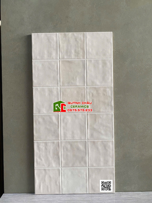 Gạch ốp tường giả thẻ vuông 30×60 lượn sóng màu kem