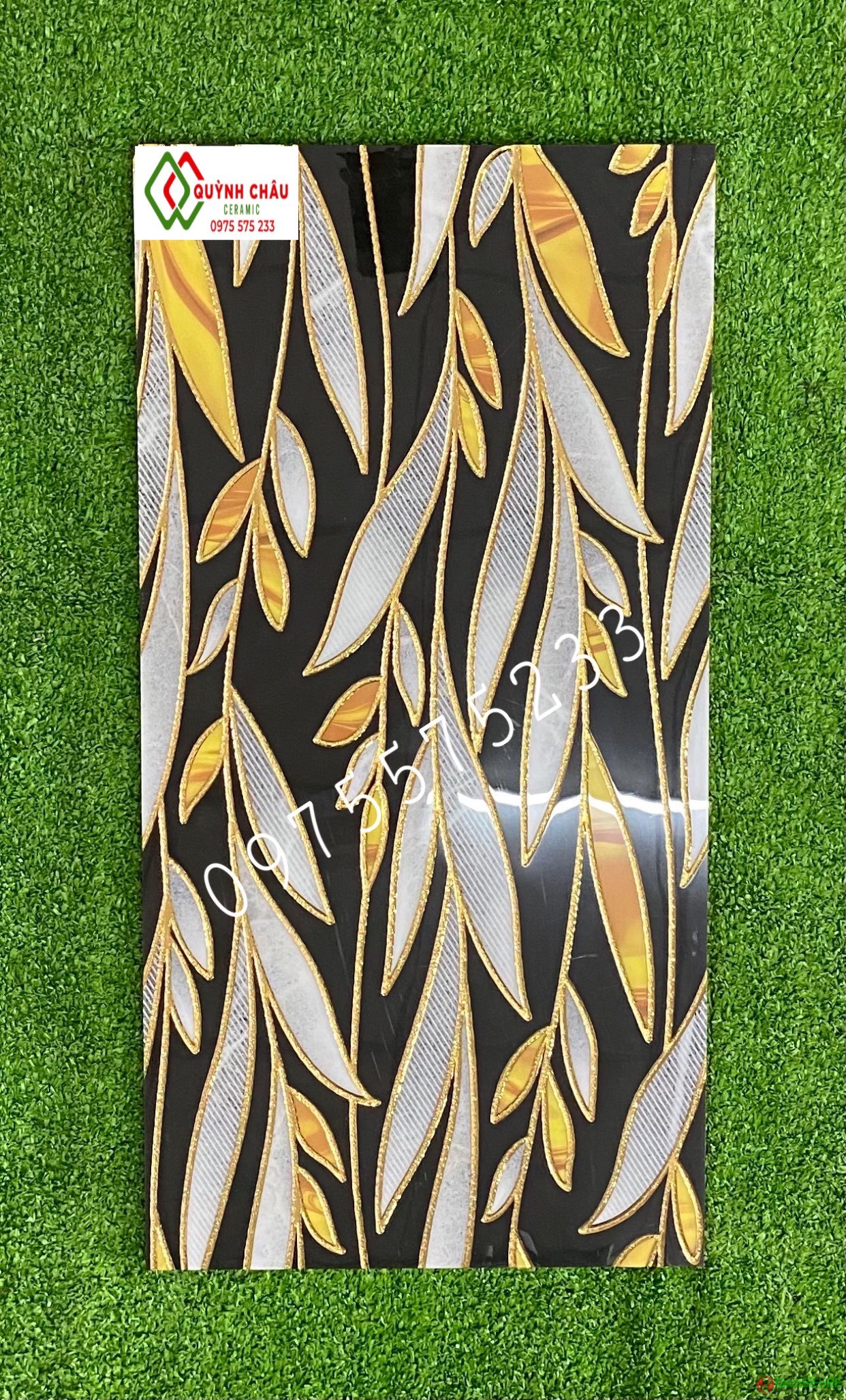 Gạch ốp tường lá cây khắc kim nhũ vàng 30×60 đẹp ts